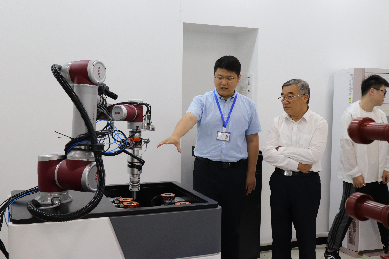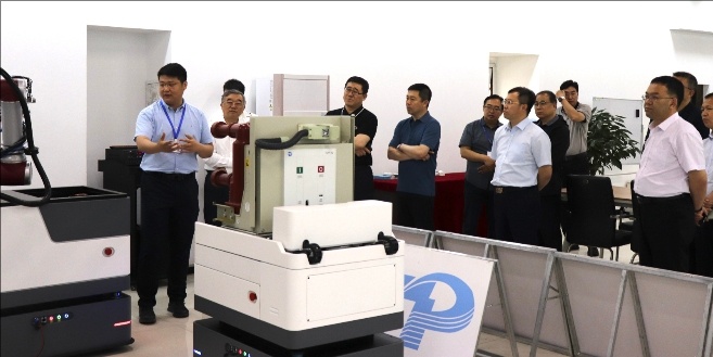 在拓普電氣智能裝備實(shí)驗(yàn)室,研發(fā)部總經(jīng)理王釗向大家介紹了企業(yè)發(fā)展歷程,并對(duì)我司第二代高壓開(kāi)關(guān)柜智能檢修機(jī)器人在產(chǎn)品研發(fā)、科技創(chuàng)新、項(xiàng)目落地、市場(chǎng)前景等方面的情況進(jìn)行了詳細(xì)介紹。各位領(lǐng)導(dǎo)對(duì)我司第二代高壓開(kāi)關(guān)柜智能檢修機(jī)器人產(chǎn)品給予了充分的肯定,并希望我公司趁勢(shì)而為,取得更好的發(fā)展。公司參會(huì)人員圍繞該產(chǎn)品未來(lái)發(fā)展等具體問(wèn)題與參觀嘉賓進(jìn)行了深入交流。