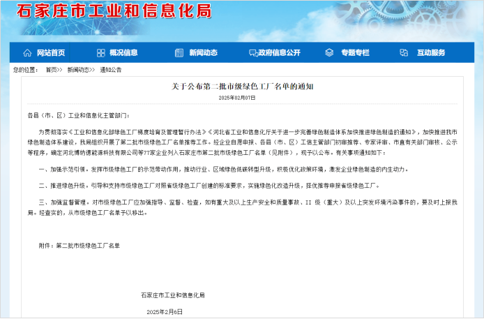 蛇年伊始,開門迎喜訊!2月7日,石家莊市工業(yè)和信息化局正式公布了第二批市級(jí)綠色工廠名單,河北拓普電氣股份有限公司憑借其在綠色制造、節(jié)能減排以及可持續(xù)發(fā)展領(lǐng)域的卓越表現(xiàn),成功躋身其中,榮獲石家莊市級(jí)綠色工廠稱號(hào)!這一榮譽(yù)不僅是對(duì)拓普電氣多年來堅(jiān)持綠色發(fā)展的肯定,更是對(duì)其未來持續(xù)創(chuàng)新的激勵(lì)。